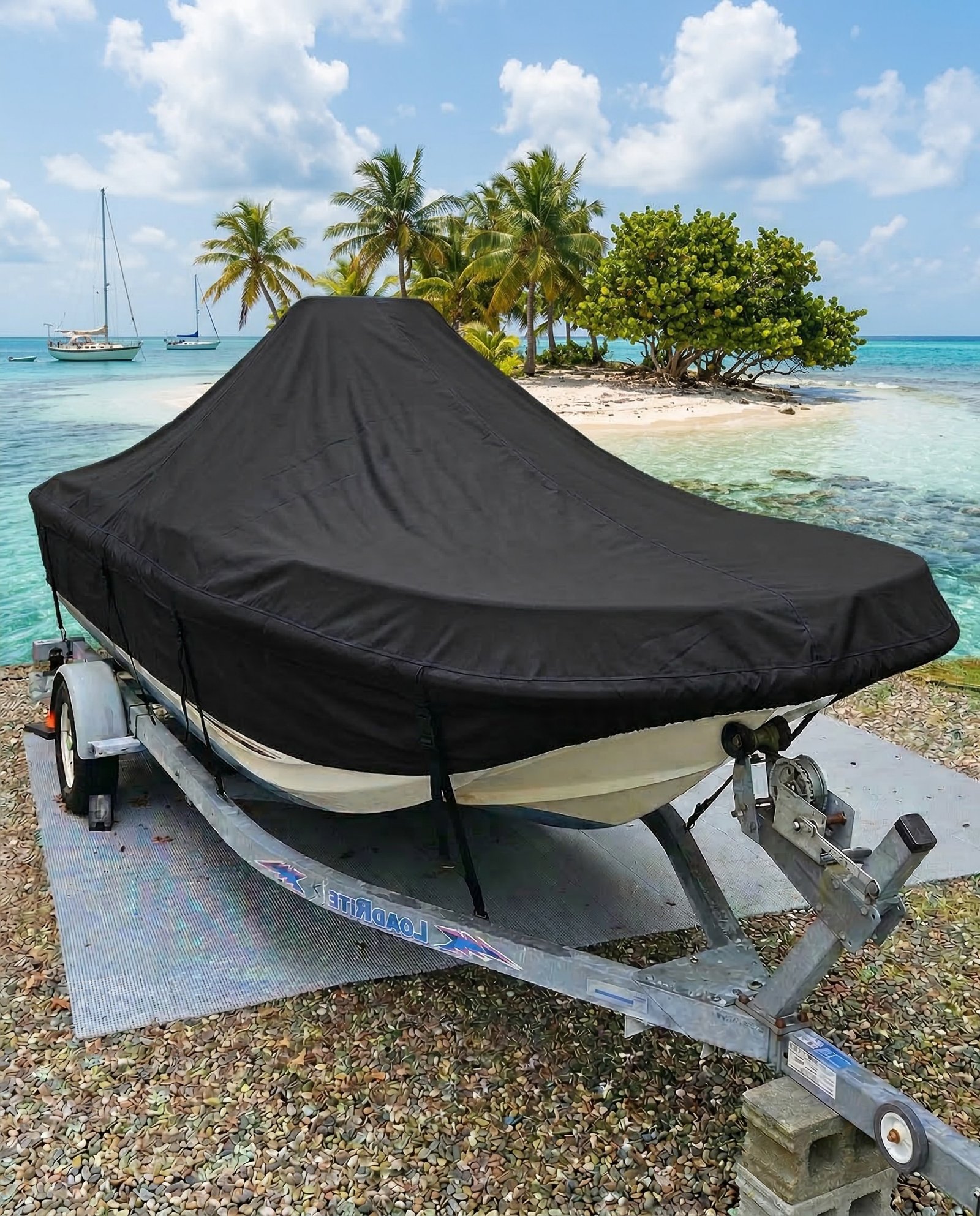 Select your boat model, cover type, and fabric choice on the product page, then add to cart. Every cover ships with the fitted cover, all necessary tie-down straps and buckles, a storage bag, and a detailed installation guide. Most orders ship within 5 to 7 business days.