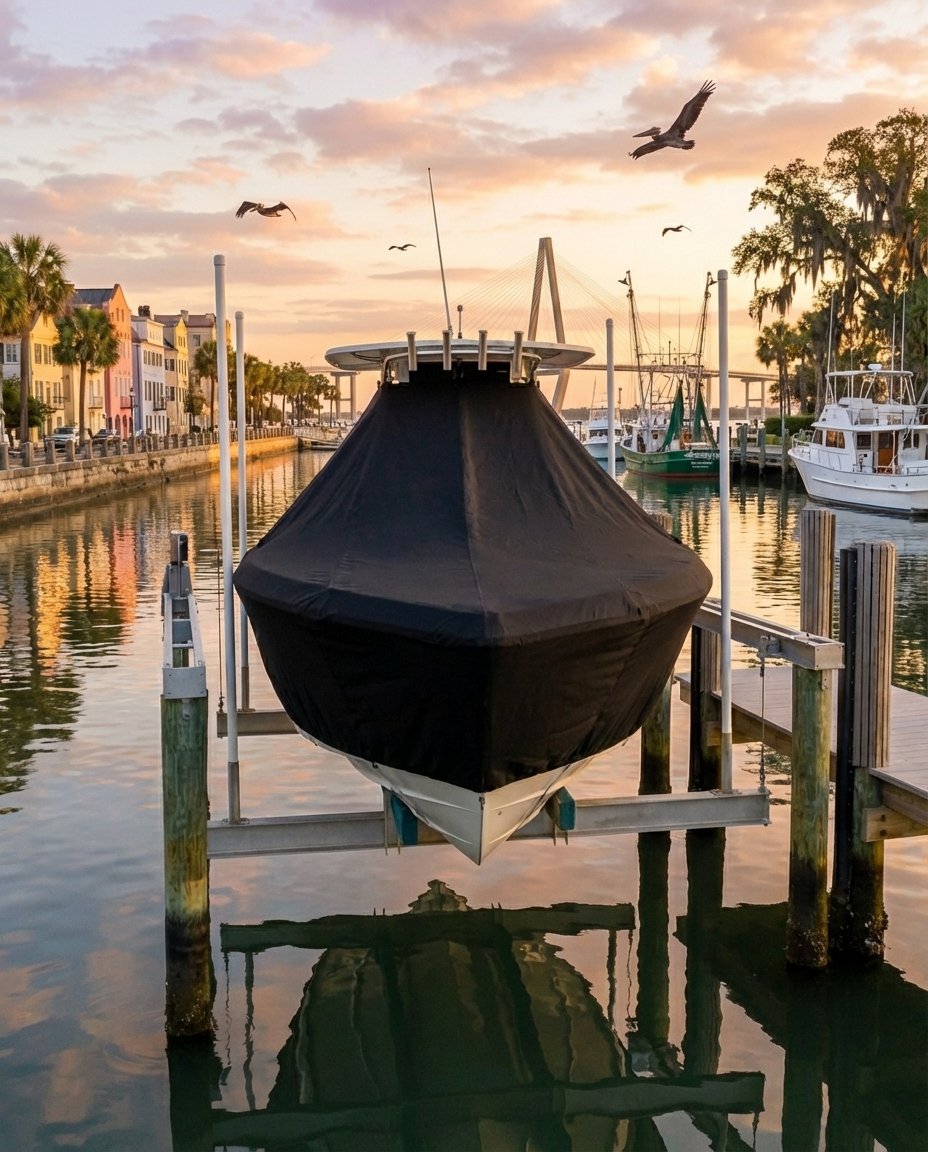 Sunbrella® — For boaters who want the best, our Sunbrella covers use 100% solution-dyed acrylic — the same fabric trusted by marine professionals worldwide. Naturally resistant to fading, mold, and water damage, Sunbrella holds its color and integrity season after season. Covered by a 6-year fabric warranty. Ships in Black, Smoke, or Marine Blue.