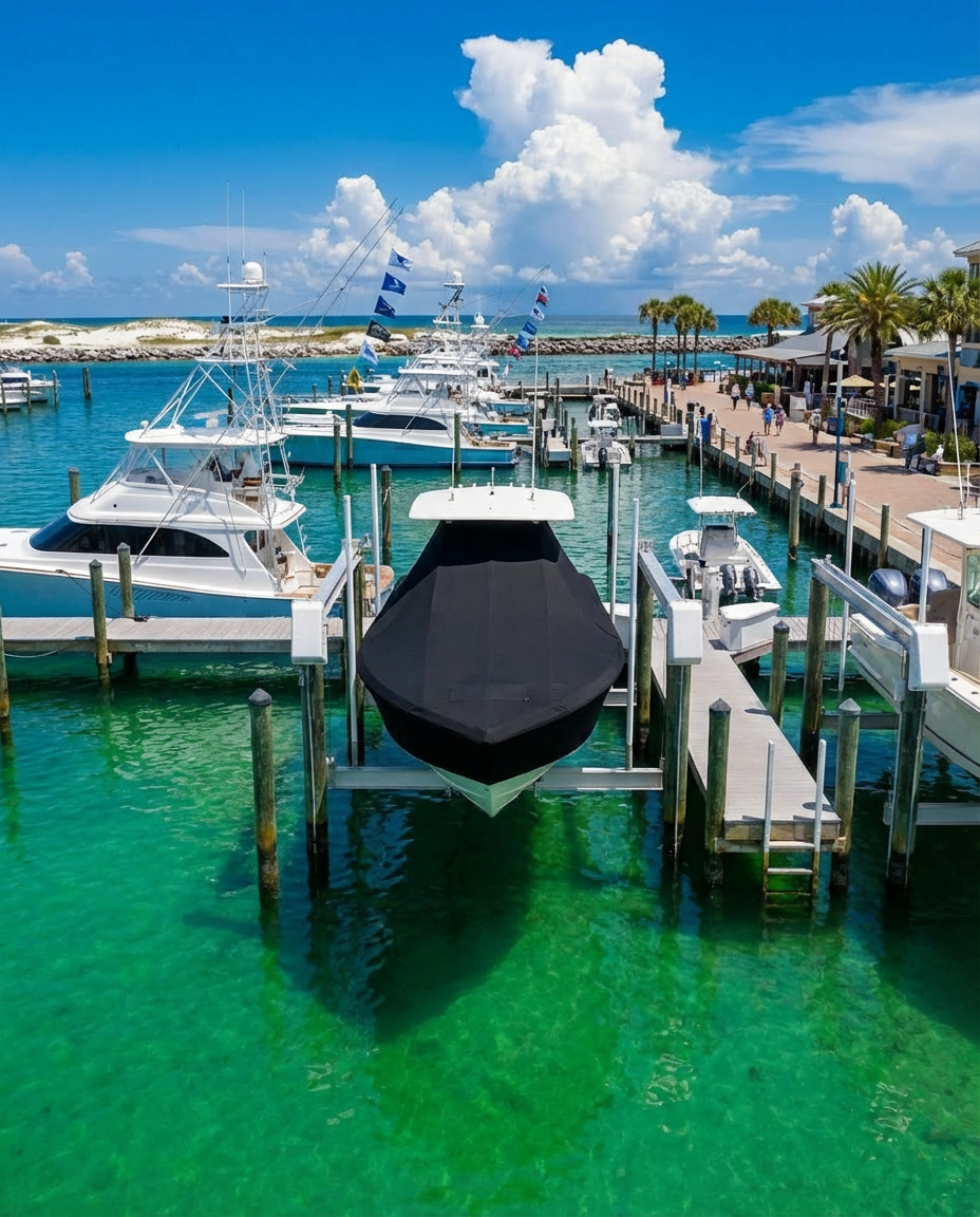 Yes. This cover is specifically designed for dock lift, boat rack, and dry storage — the standard storage methods for a 38-foot luxury center console. The cover installs and removes quickly for pre-trip prep and post-trip protection.