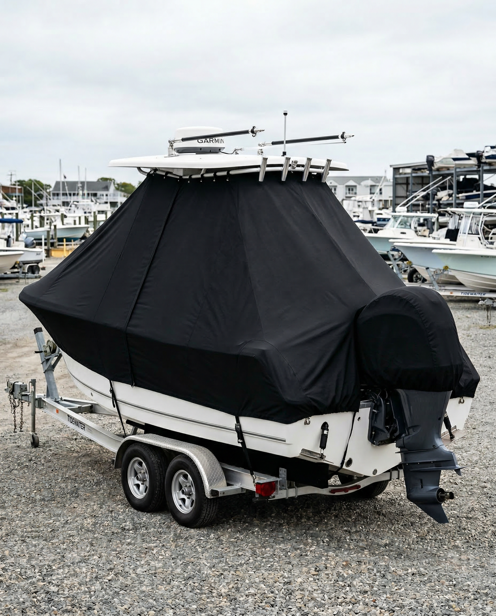 The 207's lighter weight means it can shift slightly more on the trailer during strong gusts compared to a 5,000-pound boat. That is why our tie-down strap system is especially important on this model. The straps run from the cover's lower hem down to the trailer frame on both sides, anchoring the fabric independently of the boat's weight. As long as the straps are cinched snug and the boat is properly secured to the trailer with its own tie-downs, the cover holds firm even in sustained winds.