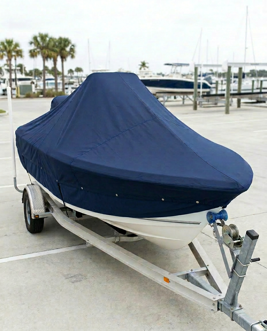 Both polyester options feature solution-dyed construction, where pigment is infused into each fiber during production rather than applied to the surface afterward. This process locks color deep into the material, preventing any dye transfer to your boat’s gel coat or finish. The result is a cover that stays vibrant without bleeding or rubbing off. Our polyester is also designed to breathe — it allows moisture trapped underneath to vent out naturally, reducing the risk of mildew and keeping your boat dry. The fabric holds its form without sagging or stretching over time, stays lightweight enough for one person to handle, and stands up to prolonged UV exposure and harsh marine weather.