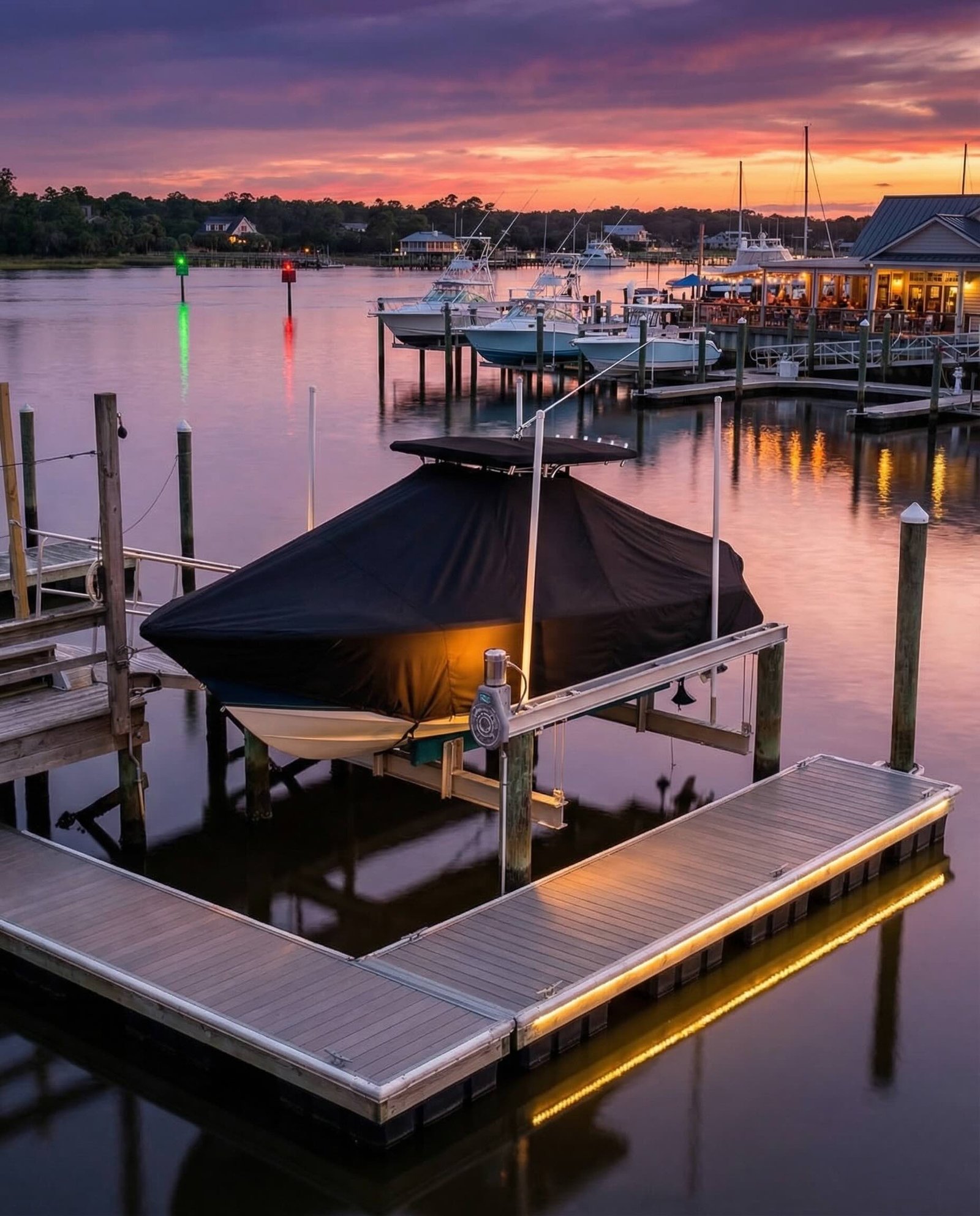 A T-top mooring cover is a one-piece fitted cover that attaches at the T-top roof frame and wraps down to enclose the entire boat while in storage. It shields the console, seating, deck hardware, electronics, and T-top structure from UV damage, rain, bird droppings, pollen, and debris — extending the life of every component.