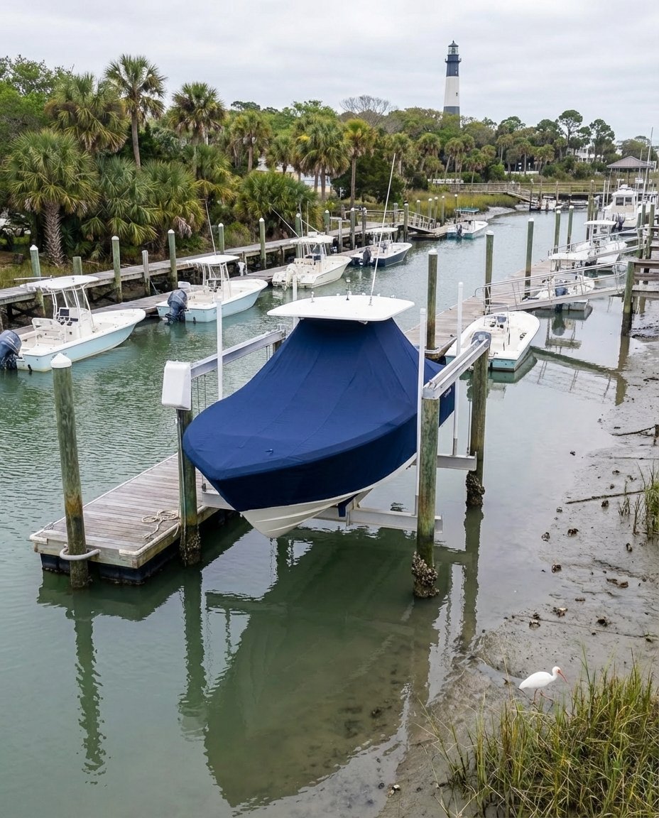 Both polyester options feature solution-dyed construction, where pigment is infused into each fiber during production rather than applied to the surface afterward. This process locks color deep into the material, preventing any dye transfer to your boat’s gel coat or finish. The result is a cover that stays vibrant without bleeding or rubbing off. Our polyester is also designed to breathe — it allows moisture trapped underneath to vent out naturally, reducing the risk of mildew and keeping your boat dry. The fabric holds its form without sagging or stretching over time, stays lightweight enough for one person to handle, and stands up to prolonged UV exposure and harsh marine weather.