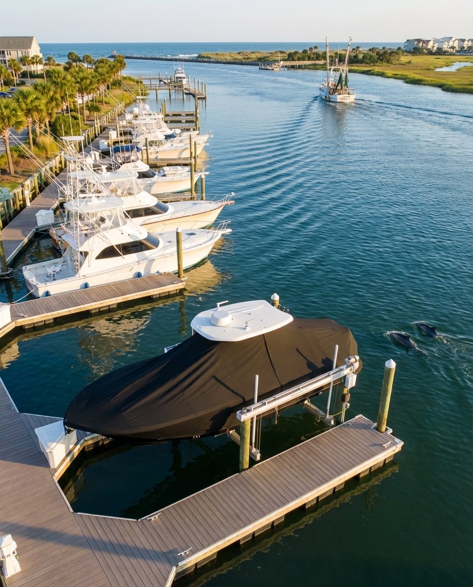 Both polyester options feature solution-dyed construction, where pigment is infused into each fiber during production rather than applied to the surface afterward. This process locks color deep into the material, preventing any dye transfer to your boat’s gel coat or finish. The result is a cover that stays vibrant without bleeding or rubbing off. Our polyester is also designed to breathe — it allows moisture trapped underneath to vent out naturally, reducing the risk of mildew and keeping your boat dry. The fabric holds its form without sagging or stretching over time, stays lightweight enough for one person to handle, and stands up to prolonged UV exposure and harsh marine weather.